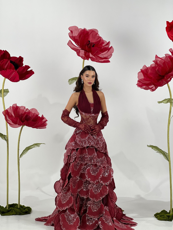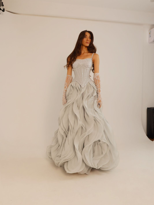 Beautifully embroidered mesh that adds depth and allure to bridal attire with its intricate designs.